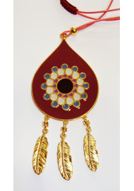 Δερμάτινο κολιέ με στοιχείο ψυχρού σμάλτου επιχρυσωμένο