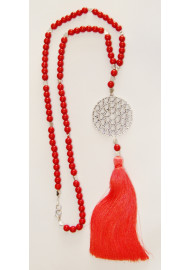 Κολιέ CL με αιματίτη και σατέν νήμα