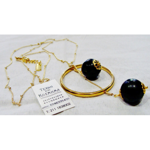 Necklace (60 cm.) With mineral agate, tied with a gold-plated chain, made with a circular gold-plated element.
