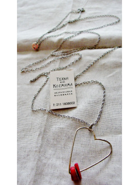 Heart necklace with minor minerals, tied with a steel chain, in a wonderful selection of minor minerals to choose from: clear quartz, red coral and amethyst.