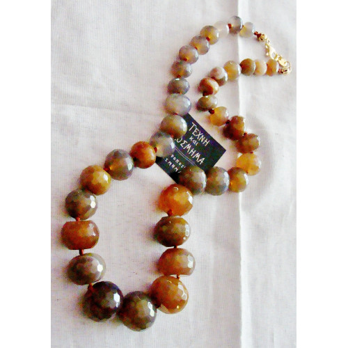Agate beads with multicolored or brown shade, in proportional stone diameter, tied with high quality and durable satin thread and 925 silver clasp.