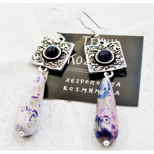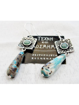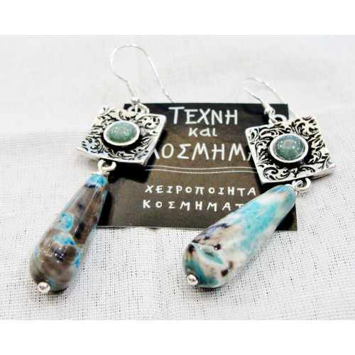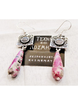 Earring with mineral multicolored jade (jade), aged item, decorated with mineral stone -cabochon - and 925o silver hook.