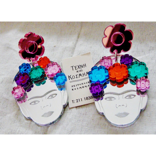 Plexiglass earring with the face of Frida Kahlo and 925 silver hook, in two wonderful creations
