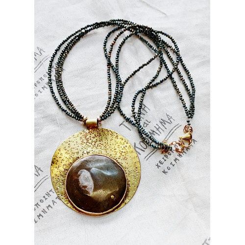 Necklace (45 cm) made of hematite on a tajie bead, central element smokie quartz, crafted in gold-plated (24k) jewelry metal without nickel and zinc, due to allergies.