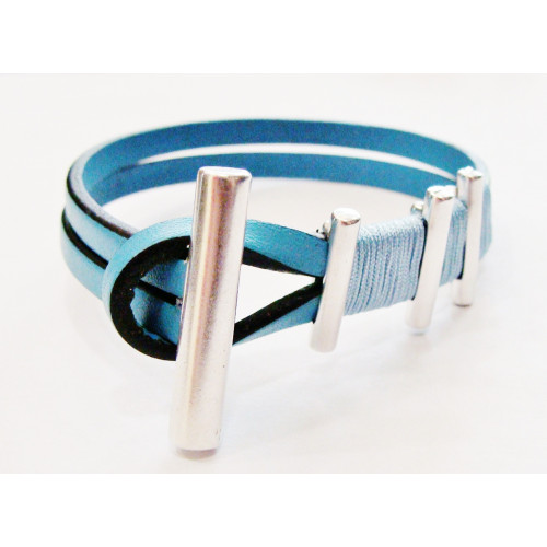 Unisex leather bracelet - bars, silver-plated in 1000th silver, decorated with satin yarn of high quality and durability in dynamic color combinations.