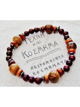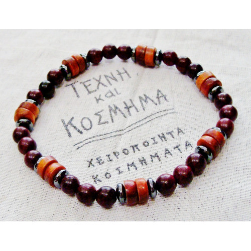 Men's bracelet made of wooden beads, in wonderful color combinations and decorated with hematite mineral