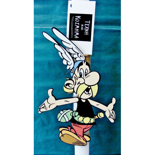 Easter scented candle 22 cm. with wooden puppet figures of Asterix or Obelix, painted with indelible colors.