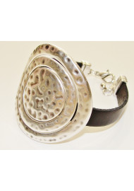 Δερμάτινο βραχιόλι με πεπαλαιωμένο στοιχείο, επαργυρωμένο