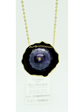 Μοτίφ με ορυκτό λίθο (χάντρα) , δεμένο με ατσάλινη αλυσίδα, φιλοτεχνημένο σε μέταλλο κοσμηματοποιίας , επιχρυσωμένο στα 24 καράτια κίτρινου χρυσού με οξείδωση στο καστόνι εσωτερικά.