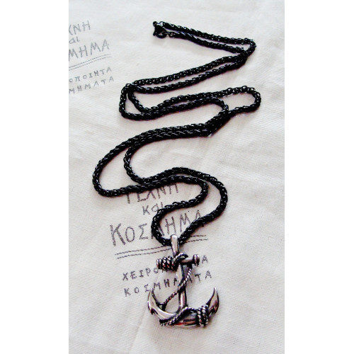 Ατσάλινο κρεμαστό κόσμημα με ναυτικό θέμα, δεμένο με ατσάλινη αλυσίδα σε ασημί ή μαύρο με την τεχνική οξείδωσης.