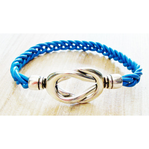 Ανδρικό βραχιόλι μαγνητικό κούμπωμα - σταυρόκομπος (Square knot) με επαργυρωμένα στοιχεία και δεμένο με δερμάτινο κορδόνι.
