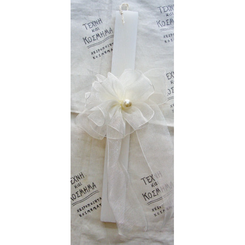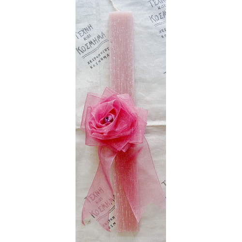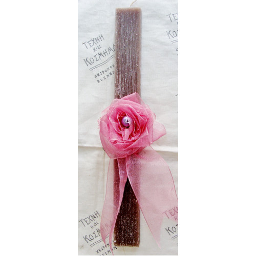 Πασχαλινή λαμπάδα (25 εκ.) αρωματική, διακοσμημένη με καρφίτσα από σατέν κορδέλα σε υπέροχες χρωματικές επιλογές. Η καρφίτσα μπορεί να φορεθεί σε πέτο σε κασκόλ ή ακόμη και για διακόσμηση μαλλιών.