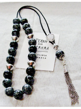Κομπολόι απο ορυκτές χάντρες αχάτη Μποτσουάνα, δεμένο με σατεν νήμα εξαιρετικής ποιότητος και αντοχής , φιλοτεχνημένο με antique χάντρες και φούντα απο ατσ'αλινη αλυσίδα. ΜΟΝΑΔΙΚΟ