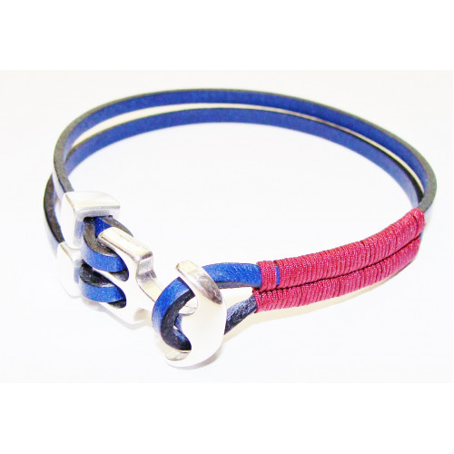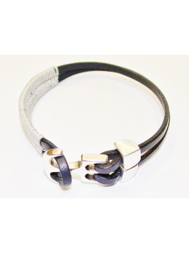 Ανδρικό βραχιόλι διπλή άγκυρα SM, δεμένο με δέρμα και επαργυρωμένο στοιχείο, διακοσμημένο με μεταξωτό νήμα υψηλής αντοχής και ποιότητος.