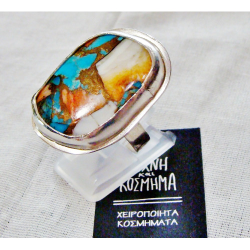 Ασημένιο δαχτυλίδι 925ο με σπάνιο ορυκτό λίθο (τυρκουαζ με χαλκό) και ανοιγόμενη γάμπα για προσαρμογή σε μεγέθη κατασκευασμένο εξ ολοκλήρου στο χέρι.