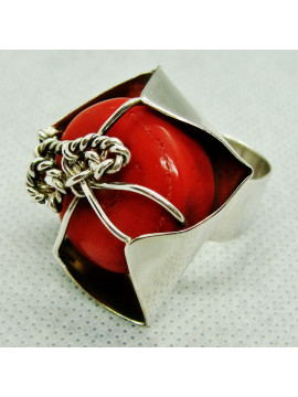Ασημένιο (925ο) δαχτυλίδι με ορυκτούς λίθους, κόκκινο κοράλλι , aquamarin, και ανοιγόμενη γάμπα για προσαρμογή σε όλα τα μεγέθη.