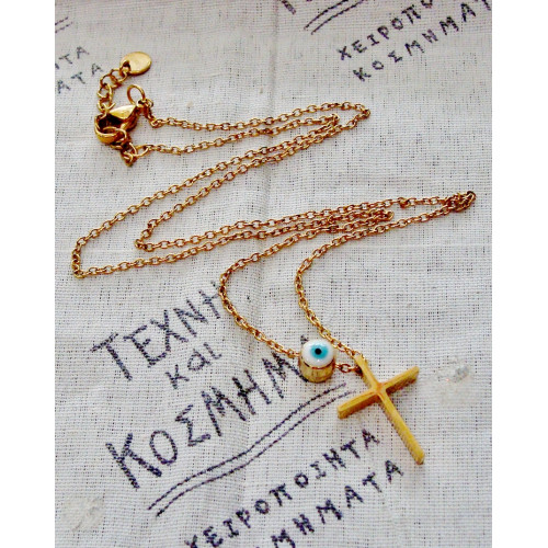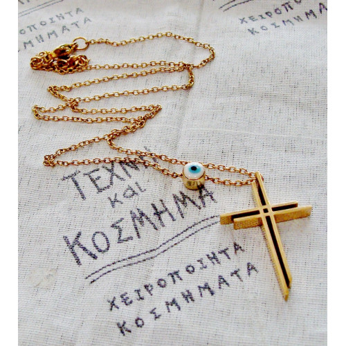 Ατσάλινος σταυρός (45 εκ.) επίχρυσος ή επαργυρωμένος, διακοσμημένος με ματάκι σε 4 υπέροχες σχεδιαστικές επιλογές .