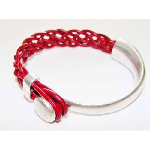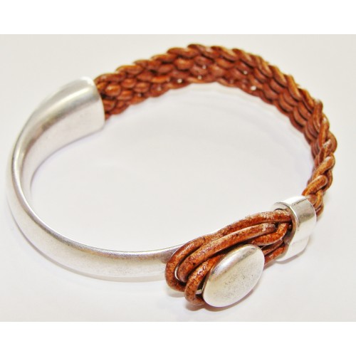 Δερμάτινο βραχιόλι με πεπαλαιωμένο στοιχείο, επαργυρωμένο.