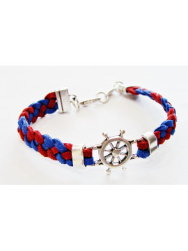 Ανδρικό βραχιόλι , σχέδιο ναυτικό τιμόνι δίχρωμο με δερμάτινο σουέτ κορδόνι, επαργυρωμένα στοιχεία σε αψόγους χρωματικούς συνδυασμούς.