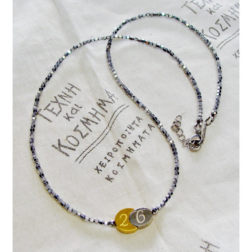 Περιδέραιο με ορυκτές χάντρες (αχάτη, μαύρο όνυχα, αιματίτη) και ατσάλινο στοιχείο σε υπέροχες χρωματικές επιλογές για να επιλέξετε .