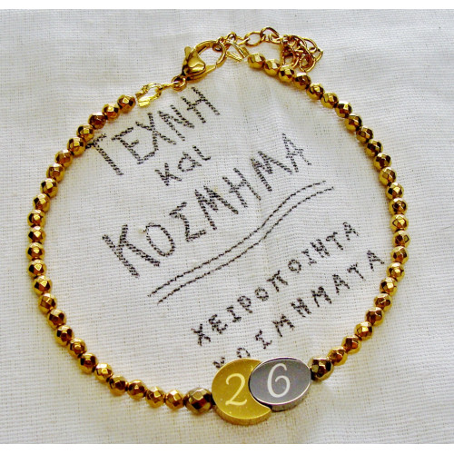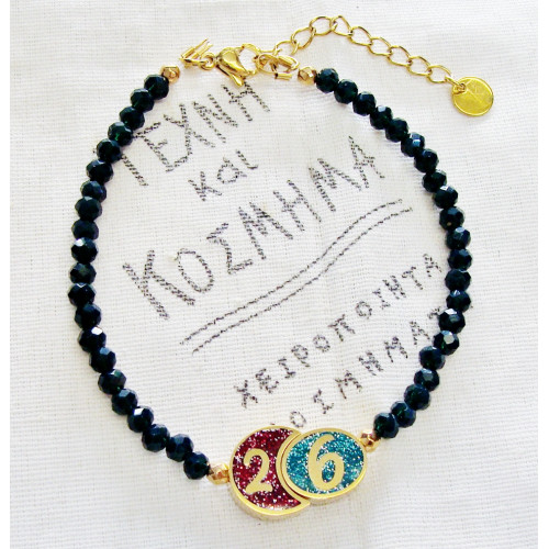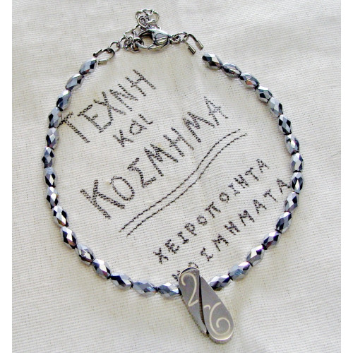 Βραχιόλι με ορυκτές χάντρες και ατσάλινο στοιχείο