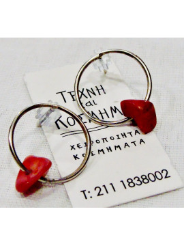 Art κυκλικό σκουλαρίκι με ορυκτά charms απο : κοράλλι ή αχάτη ή μαύρο όνυχα ή αμέθυστο ή κορνεόλιο, επαργυρωμένο ή επιχρυσωμένο και ασήμι 925.